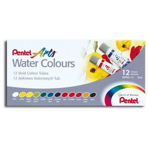Aquarela Pentel Arts Estojo com 12 cores, à base de água.