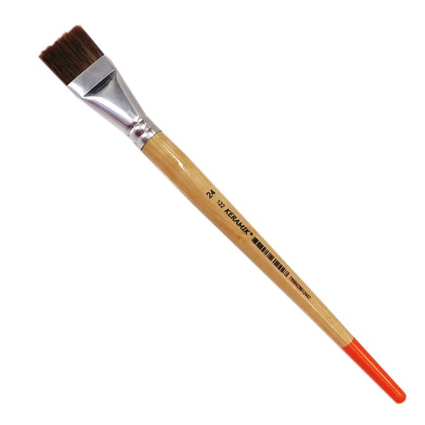 Pincel Keramik formato chato, com pelos mistos flexíveis e resistentes. Proporciona maior versatilidade para uso geral. Indicado para técnicas com utilização de óleo, acrílica, PVA, verniz. Formato chato, virola de alumínio, cabo em madeira natural envernizada.
