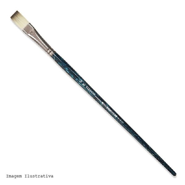 Pincel Keramik 423 chato, cabo longo e pelo sintético em dois tons.